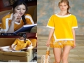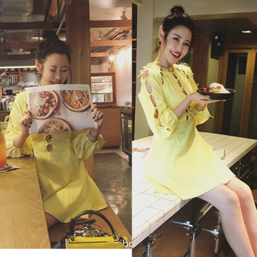2016年夏裝 微博秀左岸瀟同款連衣裙蝴蝶結(jié)裙檸檬黃A字連衣裙 /