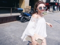 2016夏新款韓版時尚露肩一字領鏤空雪紡衫女修身寬松顯瘦一件代發 /