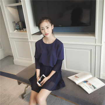 2016夏裝新款韓版中袖雪紡上衣百褶闊腿褲兩件套 套裝一件代發 /