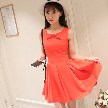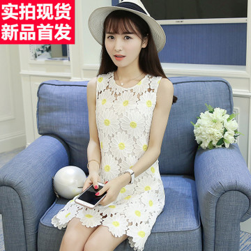 【實拍】2016夏裝新款韓版時尚清新蕾絲花朵圓領無袖連衣裙 /