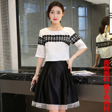 實拍2016夏裝優雅氣質新款韓版時尚套裝裙七分袖中長款蓬蓬裙 /