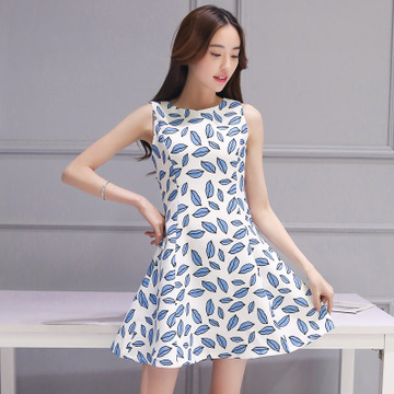 2016年夏裝新款實(shí)拍韓版修身顯瘦嘴唇印花無(wú)袖小香風(fēng)打底裙 /