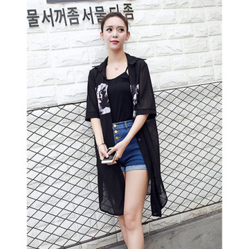 2016年實(shí)拍夏季新款韓版中長(zhǎng)款氣質(zhì)百搭超薄夢(mèng)露印花雪紡衫防曬衣 /