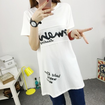 2016夏季清爽百搭寬松中長款套頭圓領女式短袖T恤 /