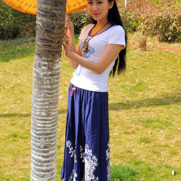 民族風(fēng)繡花圓領(lǐng)中國結(jié)修身短袖t恤 青花瓷刺繡清新民族風(fēng)夏季新款 /