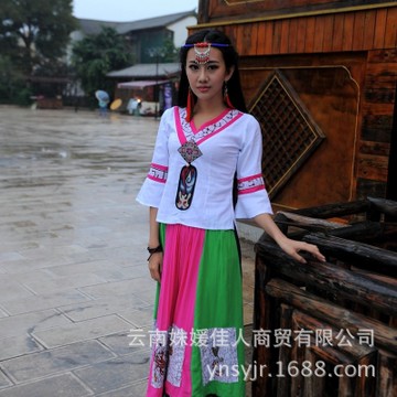棉麻中袖布紐扣v領(lǐng) 側(cè)拉鏈修身女士 民族風(fēng)襯衫 新款刺繡拼接好賣 /