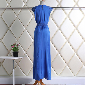 2016春秋新款純色時(shí)尚禮服女圓領(lǐng)蕾絲拼接短袖長(zhǎng)款連衣裙 爆款 /