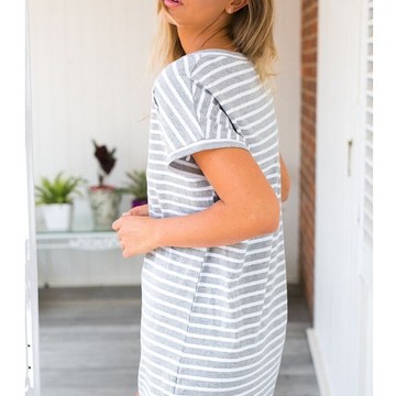 速賣通ebay2016夏季條紋短袖寬松簡約連衣裙現貨 /