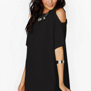 eBay 速賣通熱賣露肩短袖雪紡連衣裙 歐美寬松短裙 7色6碼 /