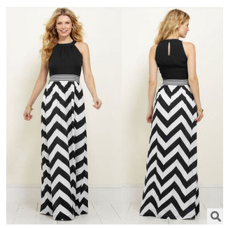 速賣通ebay爆款 2015新款夏波浪條紋長裙 外貿高腰拼接 /