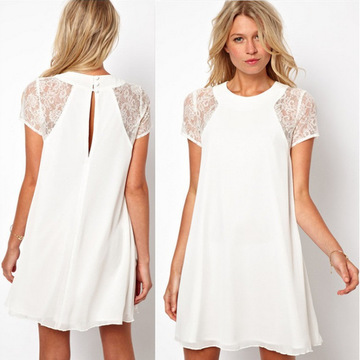8960歐美站速賣通ebay熱賣 夏季新款蕾絲拼接純色雪紡短 /
