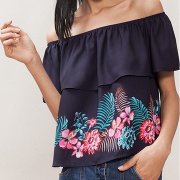 2016夏款 女士西班牙單 荷葉邊印花露肩上衣 /
