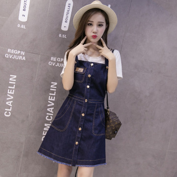 實拍新款韓版寬松牛仔背帶裙女休閑顯瘦連衣裙潮 /