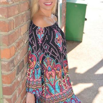2016速賣通ebay歐美外貿新款圓領長袖定位印花寬松度假連衣裙 /