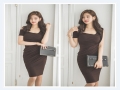 2016夏裝新品連衣裙性感不對稱露肩包臀顯瘦短袖中長款禮服 /