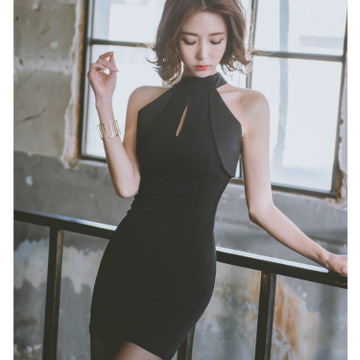 2016夏季新款性感掛脖無袖包臀連衣裙一步裙 /