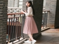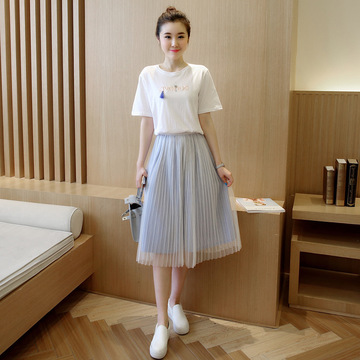 2016夏新款女裝韓版套頭針織打底衫+網紗小清新半身裙兩件套 /