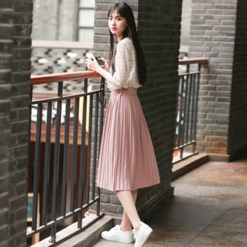 2016夏裝松緊腰優雅靈動的百搭巨顯瘦雪紡百褶半身裙中長款女裙 /