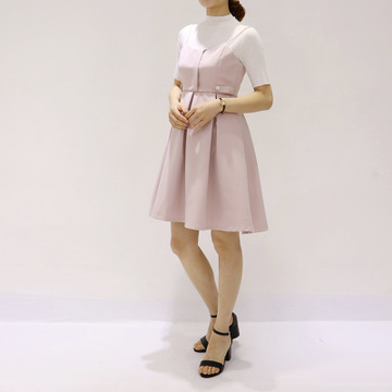 2016年韓國東大門夏季新款 短袖針織T吊帶高腰修身兩件套連衣裙 /