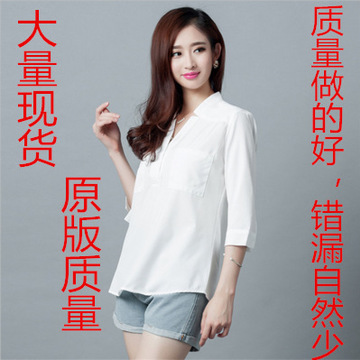 2016夏季女裝立領上衣半袖白色百搭女式襯衫 /