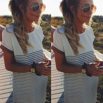 2016夏季新款歐美大碼ebay速賣通條紋拼接短袖T恤 /