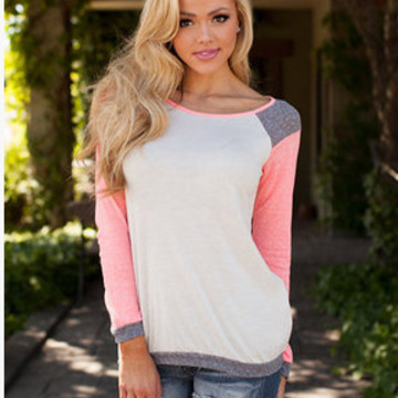 2016速賣通歐美秋季爆款拼色圓領(lǐng)長袖T恤衫 /