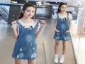 實拍 2016夏裝新款韓版女裝學院風破洞大碼牛仔背帶裙 /
