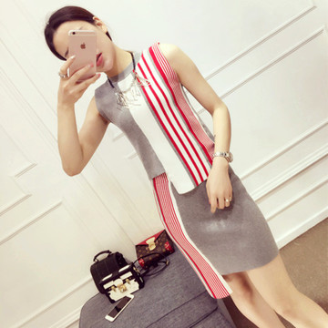2016春夏新款女裝橫條紋針織背心 百搭半身裙a字裙兩件時尚 /