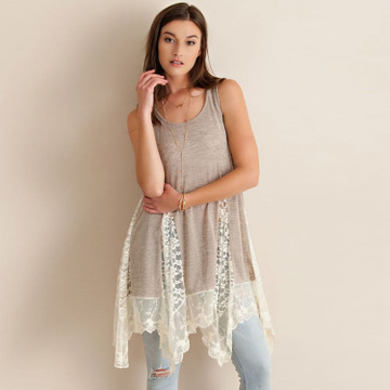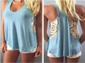 ebay速賣通歐美外貿夏季新款花邊拼接寬松休閑背心 /