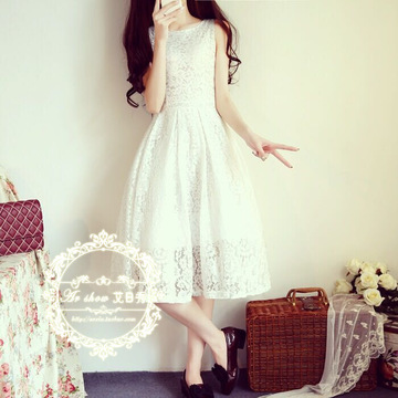 2016春夏季新款女裝韓版蕾絲連衣裙潮流氣質露肩中裙 /