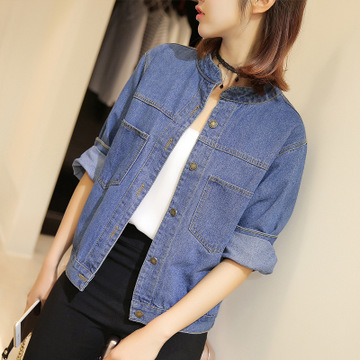 牛仔外套女2016春裝新款韓版立領長袖寬松牛仔衣夾克外套 /