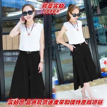 實拍2016夏裝新款女裝時尚套裝韓版短袖闊腿褲兩件套裝潮 /