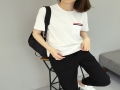 韓范潮流圓領口袋條紋貼布鈕扣寬松百搭顯瘦短袖T恤女 /