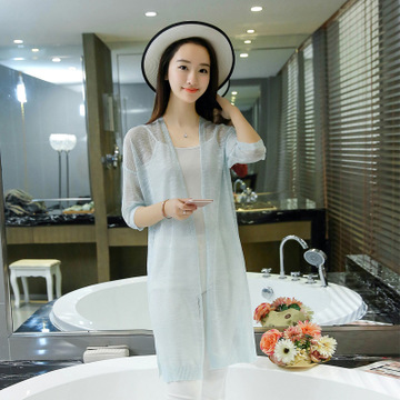 大貨新款防曬衫空調(diào)衫女裝中長款針織衫韓版開衫薄外套連衣裙 /
