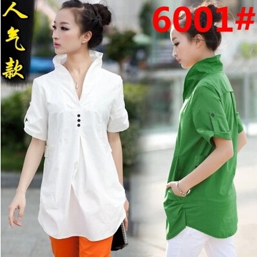 2016夏裝新款民族風(fēng)休閑大碼女百搭中長款白色上衣短袖女襯衫 /