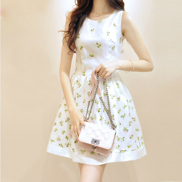 2016夏季韓版修身顯瘦氣質蓬蓬裙無袖背心連衣裙 /