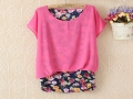 2016夏季新款韓版假兩件碎花拼接短袖雪紡衫 女裝批發(fā)廠家直銷 /