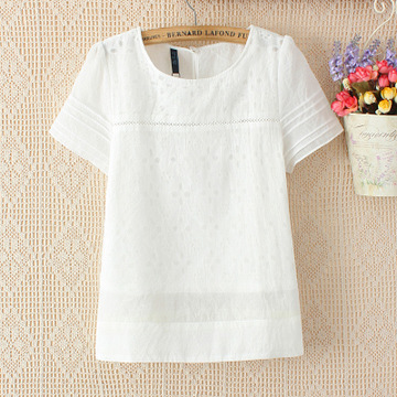 2016夏季新款韓版繡花拼接雪紡襯衫 寬松短袖襯衣女 /