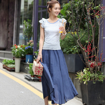 2016夏季新款韓版純色雪紡長裙大擺半身裙 百褶仙女裙 /