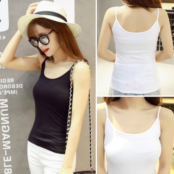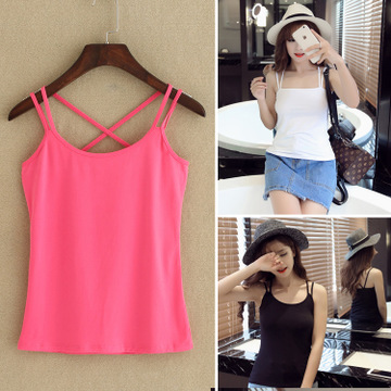 2016新款簡約純色上衣大碼T恤時尚拉架棉打底衫顯瘦吊帶背心女夏 /