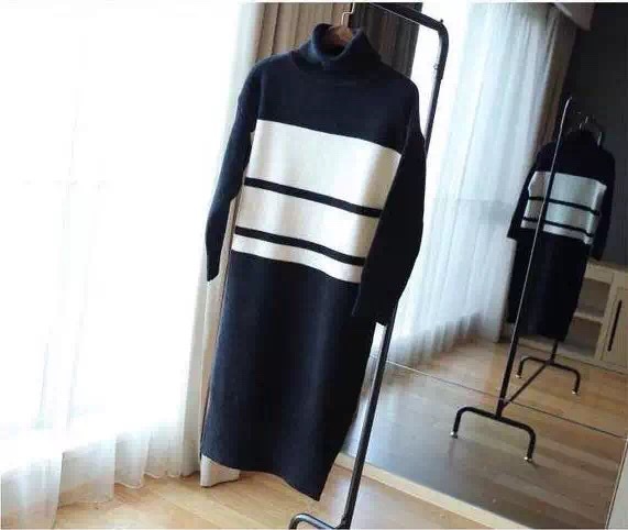 東大門2015秋冬新款黑白撞色高領毛衣連衣裙批發招代理 /