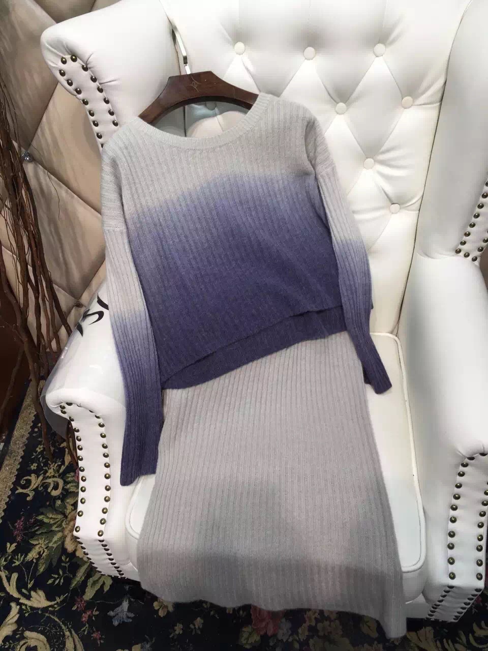 東大門2015秋冬新款森女系針織彈力漸變色裙套裝批發招代理 /