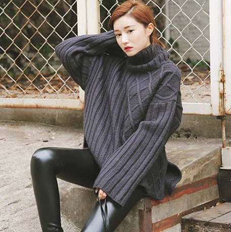 2015秋冬韓版毛衣個性不同紋理麻花編織不規則拼接針織衫女 /
