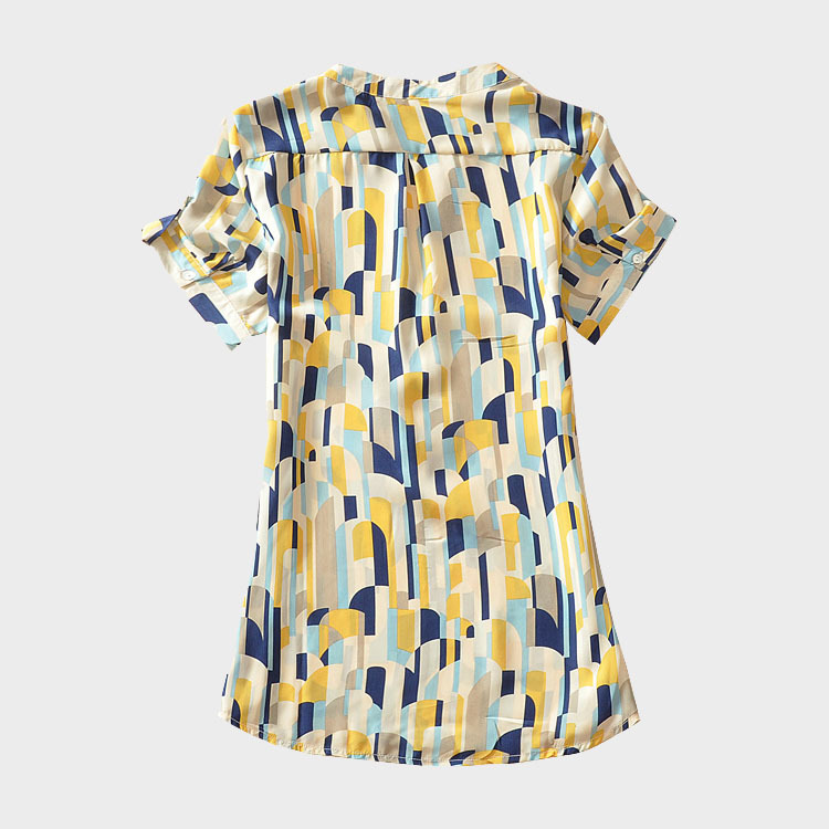 2014夏裝歐美新款幾何圖案短袖套頭襯衫女桃心V領(lǐng)寬松雪紡襯衣 /