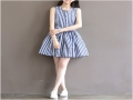 2016女新款韓版小清新修身收腰短裙露肩棉麻條紋連衣裙(送腰帶) /