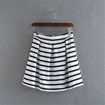一件代發2016夏季新款 歐美風時尚高腰條紋彈力寬褶短裙半身裙 /