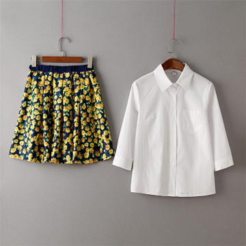 一件代發2016夏季新款 韓版明星同款襯衫+田園印花高腰半身裙套裝 /