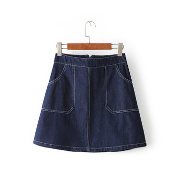 一件代發2016夏季新款 韓版大口袋修身A字裙純棉牛仔半身裙包臀裙 /