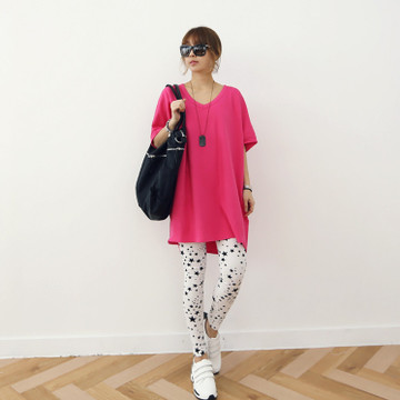 中長款T恤短袖V領寬松色純棉顯瘦大碼韓版新2016夏女裝休閑時尚潮 /