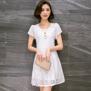 實(shí)拍春夏裝新款大碼女裝斤胖MM蕾絲打底純色A字裙潮連衣裙 /